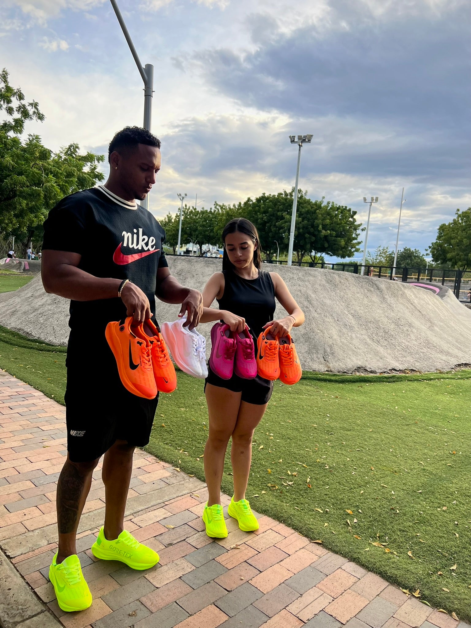Estos sneakers de colores vibrantes—verde neón, naranja, fucsia, amarillo y blanco—no solo destacan por su diseño audaz, sino también por su versatilidad inigualable.